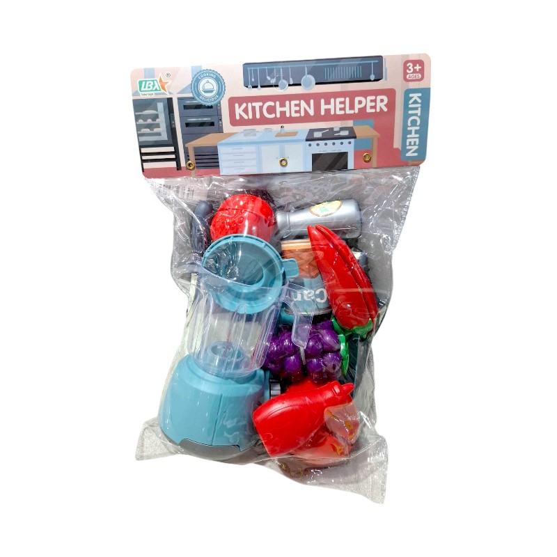 Παιδικό σετ κουζίνας με μπλέντερ, αξεσουάρ, σκεύη και τρόφιμα, σε υπέροχο πολύχρωμο σχεδιασμό.
