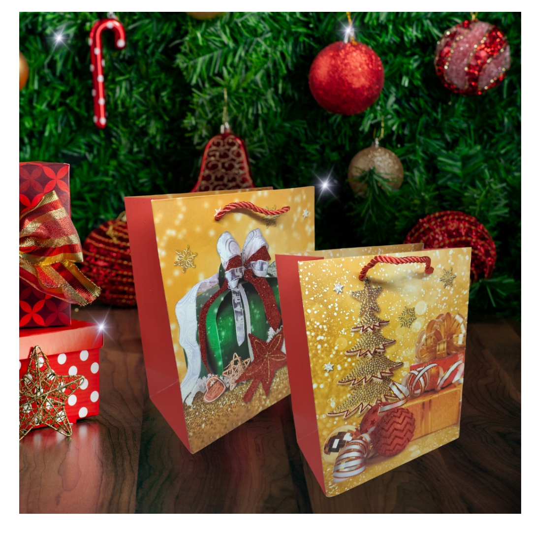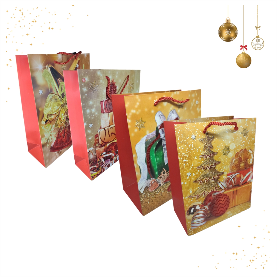 Σετ Χριστουγεννιάτικες τσάντες δώρων με glitter. Σετ 12 τεμαχίων. Ιδανικές για τα Χριστουγεννιάτικα δώρα σας. Τέσσερα διαφορετικά σχέδια. Διαστάσεις 41x30cm.