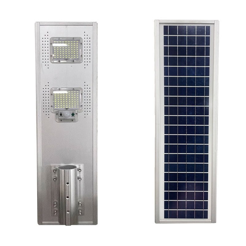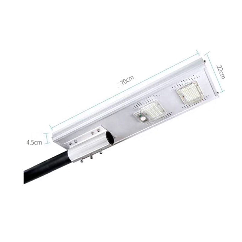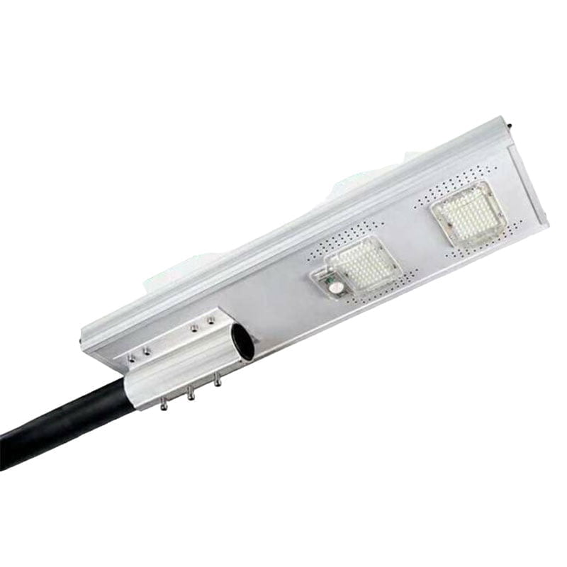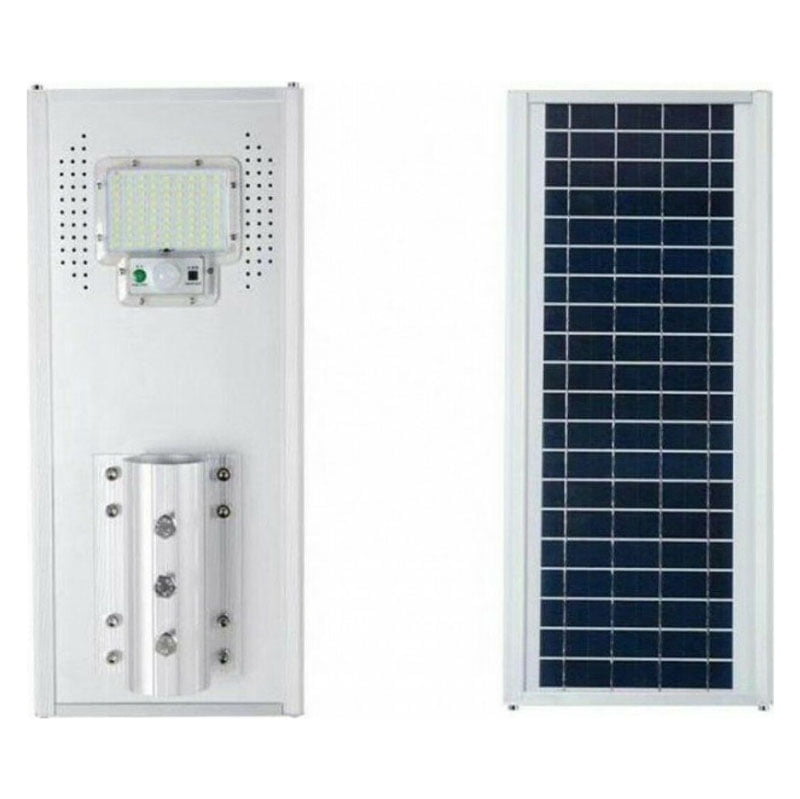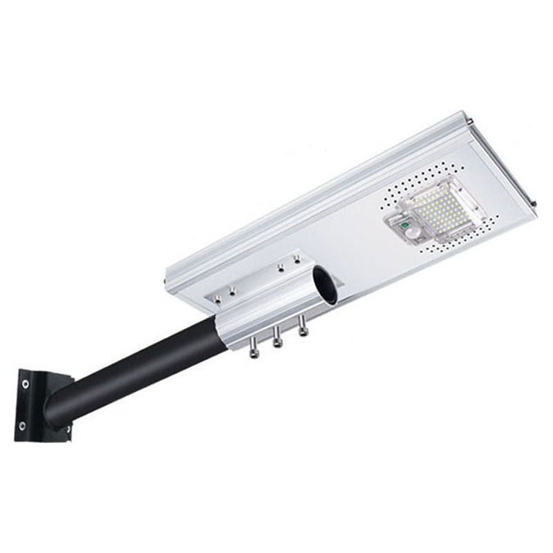Ηλιακό φωτιστικό δρόμου σε ασημί χρώμα, που συγκεντρώνει και αποθηκεύει ηλιακή ενέργεια για τη λειτουργία του, ώστε να μη χρειάζεται να συνδεθεί σε παροχή ρεύματος. Διαθέτει ανιχνευτή κίνησης για να ενεργοποιείται όταν εντοπίσει κίνηση εντός της εμβέλειάς του, αλλά και αισθητήρα φωτός για να ενεργοποιείται αυτόματα κατά τη δύση του ηλίου. Περιλαμβάνει τηλεκοντρόλ ώστε να το χειρίζεστε από απόσταση.