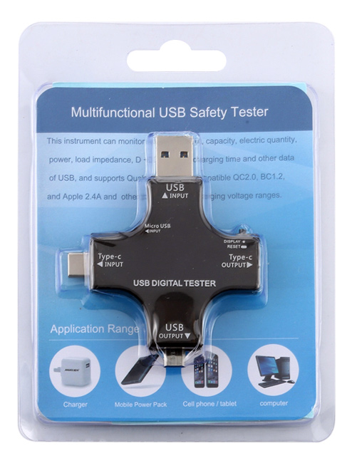 Συσκευή ελέγχου ορθής λειτουργίας για θύρες USB, Micro USB & USB-C, με εύρος μέτρησης τάσης 3.6 – 32V. Διαθέτει οθόνη με έγχρωμες ενδείξεις τάσης, ρεύματος, χωρητικότητας, ισχύος και άλλων δεδομένων. Υποστηρίζει ρύθμιση της τάσης και του ρεύματος για την προστασία της συσκευής και διαθέτει πλήκτρο για την επαναφορά των ρυθμίσεων. Είναι κατάλληλη για χρήση σε υπολογιστές, laptop, φορτιστές, power bank, smartphone κ.α.