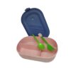 Δοχείο φαγητού με 3 χωρίσματα. Είναι ελαφρύ και πρακτικό ώστε να διατηρήσετε και να αποθηκεύσετε φρέσκα φρούτα, λαχανικά και μερίδες γεύματος. Ιδανικό για το σχολείο. Διαστάσεις 19x18x6cm. Περιλαμβάνει ένα κουταλάκι και ένα πιρούνι.