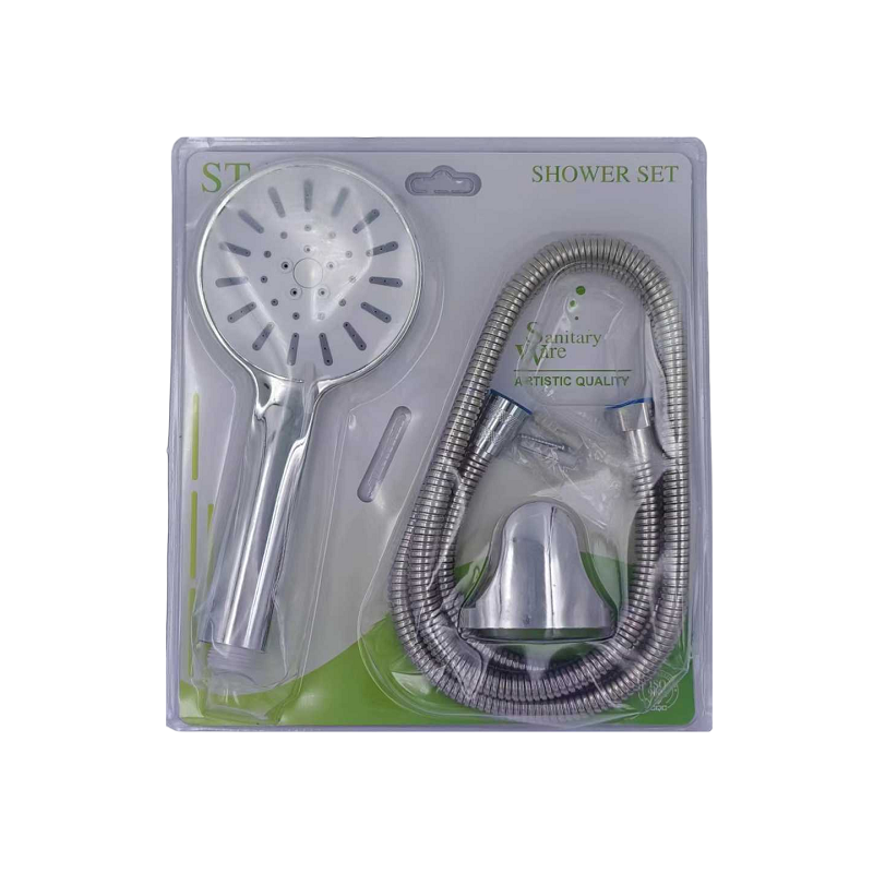 Τηλέφωνο-ακροφύσιο ντουζιέρας με 3 επιλογές πίεσης και σπιράλ σωλήνα μήκους 1.5 μέτρου, με επιτοίχια βάση και όλα τα παρελκόμενα τοποθέτησης.