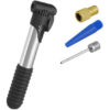 Μίνι τρόμπα χειρός με 3 ακροφύσια για το φούσκωμα των ελαστικών του ποδηλάτου σας. Το σώμα της είναι κατασκευασμένο από αλουμίνιο και ανθεκτικό πλαστικό υλικό. Στη συσκευασία συμπεριλαμβάνονται βάση και βίδες για την τοποθέτηση της στο ποδήλατο.