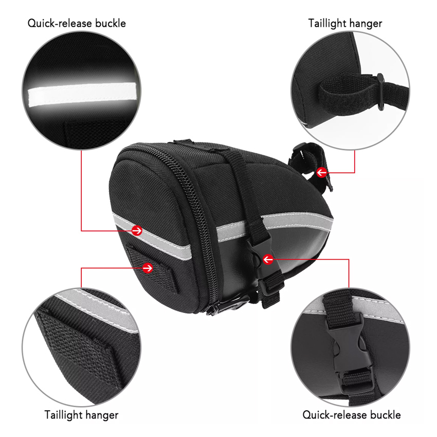 Αδιάβροχο τσαντάκι ποδηλάτου που προσαρμόζεται στην σέλα του ποδηλάτου, κατασκευασμένο από υψηλής ποιότητας υλικά. Είναι ιδανικό για την τοποθέτηση μικρών αντικείμενων όπως κλειδιά, χρήματα ή κινητό.