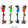 Παιχνίδι σκύλου σχοινί με μασητική μπάλα, από ελαστικό, ανθεκτικό, μη τοξικό πολυεστέρα, ιδανικό για παιχνίδια τραβήγματος/αντίστασης ενώ παράλληλα βοηθά στην υγιεινή στόματος του σκύλου σας καθώς καθαρίζει ήπια και απασχολεί τα δόντια του. Συνολικό μήκος: 32cm.