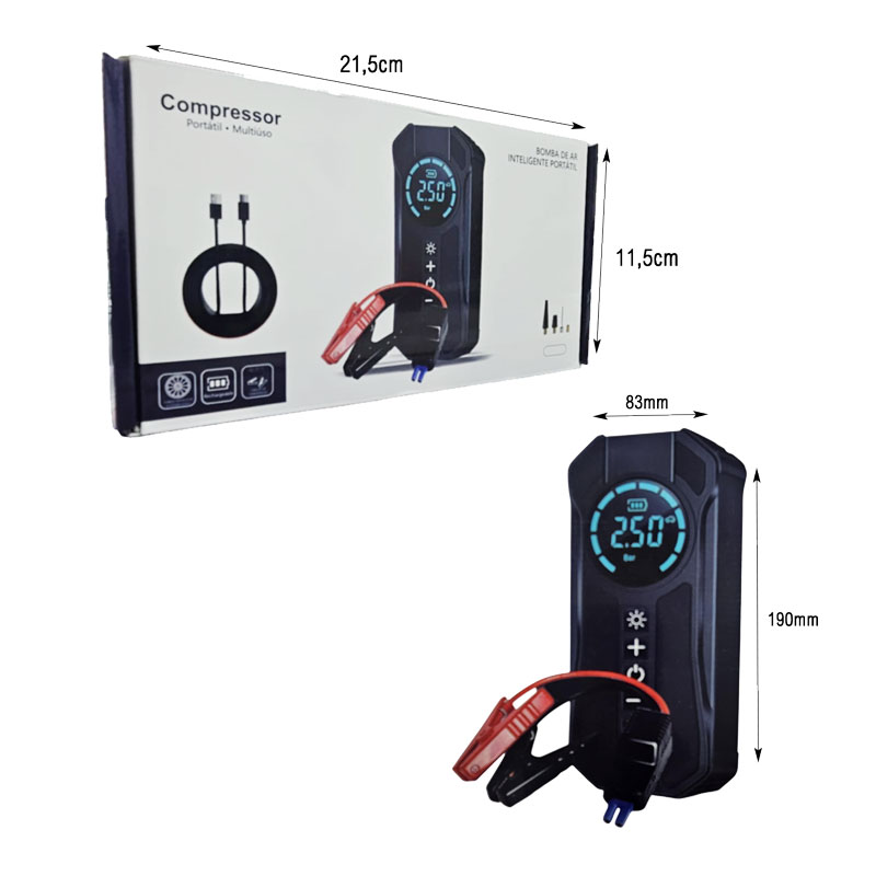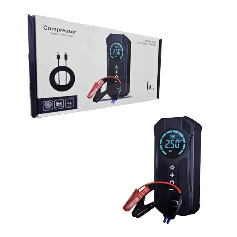 Πρακτικός και ισχυρός φορητός αεροσυμπιεστής πολλαπλών χρήσεων, ιδανικός για χρήση στο αυτοκίνητο, τη μηχανή ή το ποδήλατο. Διαθέτει ευανάγνωστη ψηφιακή οθόνη LCD, λειτουργία αυτόματης διακοπής πίεσης και ελαφριά κατασκευή για εύκολη μεταφορά.