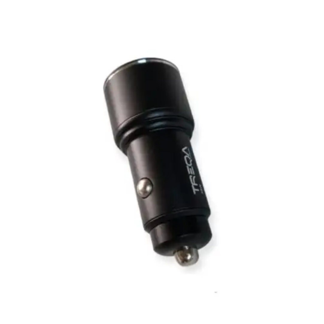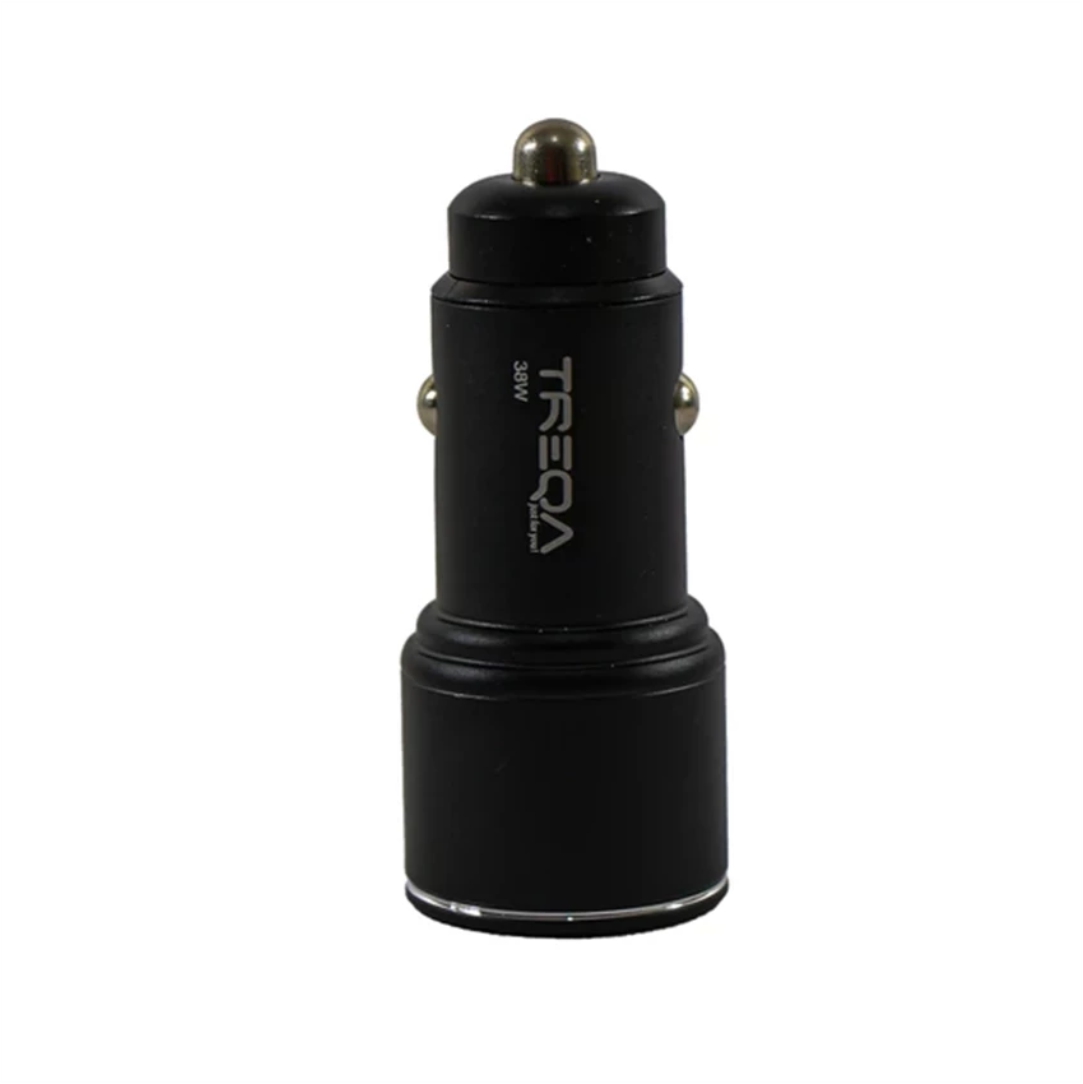 Φορτιστής αυτοκινήτου της Treqa. Εφαρμόζει στη θέση του αναπτήρα ώστε να φορτίζετε τις συσκευές σας στο ταξίδι, την εκδρομή ή τη διαδρομή για τη δουλειά. Διαθέτει μία θύρα USB και μία θύρα Type-C για τη φόρτιση του tablet ή του smartphone σας. Υποστηρίζει γρήγορη φόρτιση, η οποία θα πρέπει να είναι συμβατή με το κινητό σας. Συνολική ένταση ρεύματος φορτιστή 3A. Ισχύς 38W.
