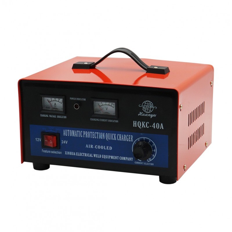 ΦΟΡΤΙΣΤΉΣ ΜΠΑΤΑΡΙΏΝ φορτιστής HUAN QIU HYKC-40A έχει μια πολύ απλή λειτουργία. Ο μοχλός επιλέγει την τάση μπαταρίας – 12 ή 24 βολτ και ο περιστροφικός διακόπτης ρυθμίζει το ρεύμα κατά τη φόρτιση. Για τη φόρτιση σε πλήρη ισχύ, συνιστάται να ρυθμίσετε 10-25 ενισχυτές, ανάλογα με τις προδιαγραφές της μπαταρίας. Το μέγιστο ρεύμα εξόδου της συσκευής 40 amp μπορεί να εφαρμοστεί για την επείγουσα εκκίνηση του κινητήρα.