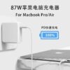 Φορτιστής Laptop Type-C με αντάπτορα πρίζας, υψηλής ισχύος έως 87W, ειδικό για συσκευές Apple.