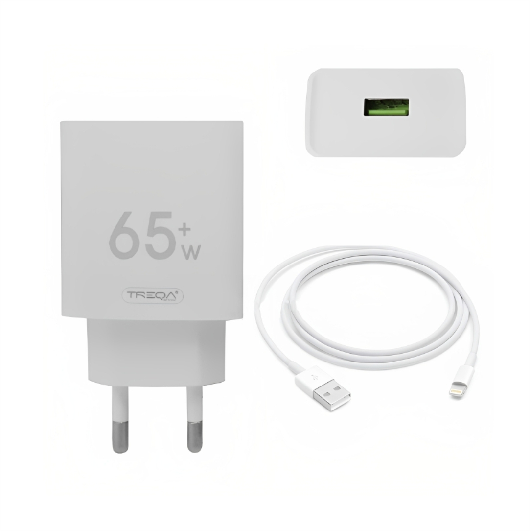 Φορτιστής της Treqa προσφέρει μια πλήρη λύση φόρτισης για το κινητό σας, σε περίπτωση που ο παλιός χάλασε ή δεν σας ικανοποιεί η ταχύτητα του. Υποστηρίζει γρήγορη φόρτιση, η οποία θα πρέπει να είναι συμβατή με το κινητό σας. Ισχύς φόρτισης 65W. Καλώδιο USB σε Ios.