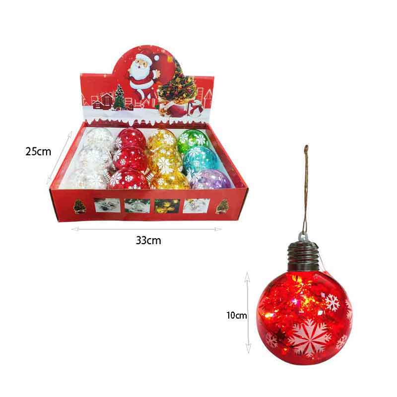 Χριστουγεννιάτικες φωτιζόμενες μπάλες με σχέδιο νιφάδες χιονιού, ιδανικές για να στολίσουν το δέντρο ή οποιονδήποτε εσωτερικό χώρο. Διατίθενται σε διάφορα χρώματα και εκπέμπουν ζεστό φως, δημιουργώντας μαγική γιορτινή ατμόσφαιρα. Ύψος μπάλας 10cm.