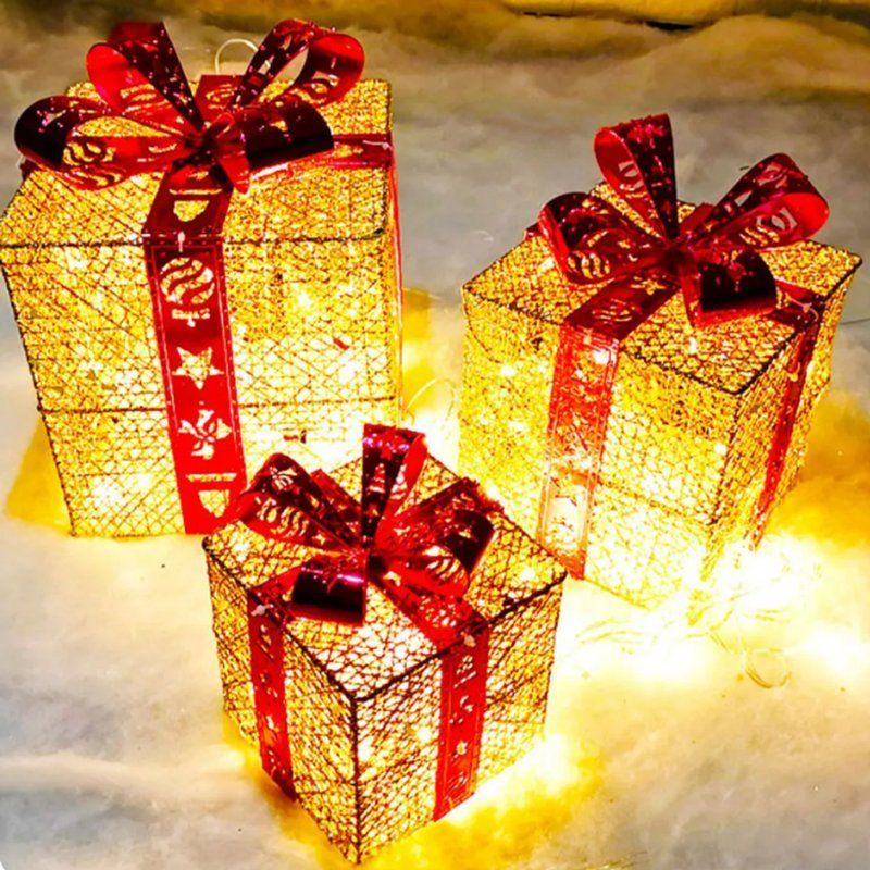 Χριστουγεννιάτικα Φωτιζόμενα Κουτιά Δώρων 3τμχ – Christmas LED Gift Boxes