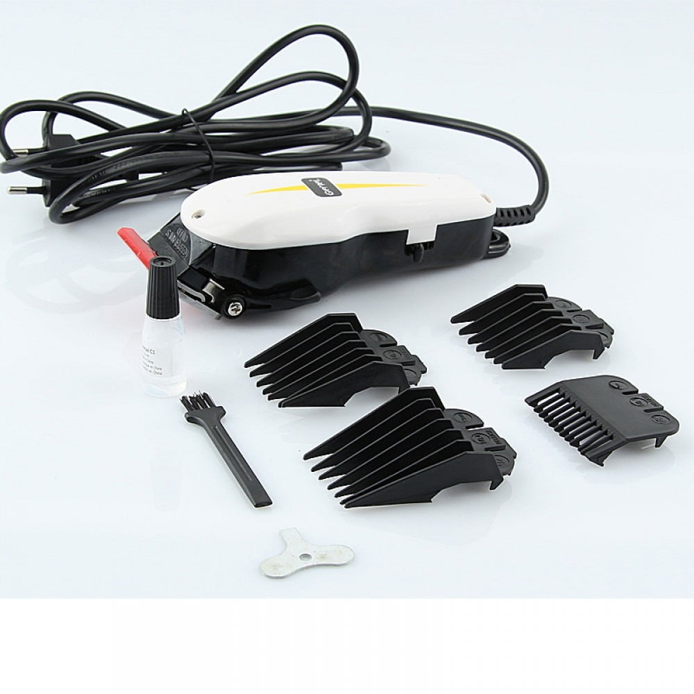 Κουρευτική μηχανή με καλώδιο, με πολύ δυνατό μοτέρ, ρυθμιζόμενο μήκος κοπής χειροκίνητα και 4 κεφαλές για ακόμα μεγαλύτερο μήκος. Οι λεπίδες είναι κατασκευασμένες από ανοξείδωτο ατσάλι.