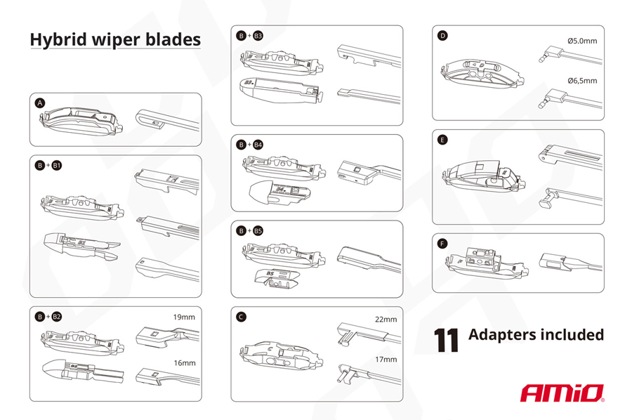 AMIO υαλοκαθαριστήρας Hybrid 02204, 17" (425mm), 11 αντάπτορες