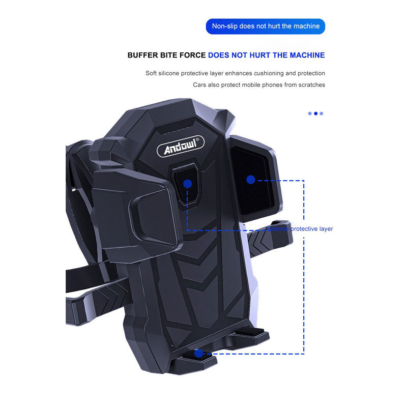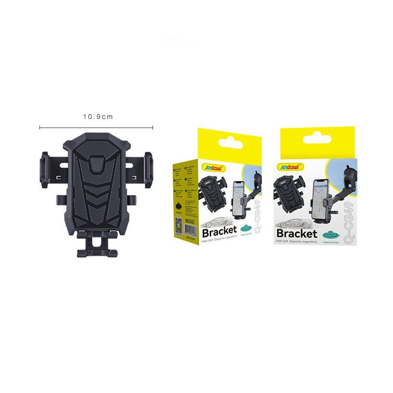 Βάση κινητού αυτοκινήτου της εταιρείας Andowl. Η βάση στηρίζεται με βεντούζα άρα μπορεί να τοποθετηθεί στο ταμπλό ή το παρμπρίζ του αυτοκινήτου. Η στήριξη της συσκεύης στη βάση γίνεται με ρυθμιζόμενα άγκιστρα. Διαθέτει περιστροφή για πιο εύκολη ρύθμιση της επιθυμητής θέσης της συσκευής.