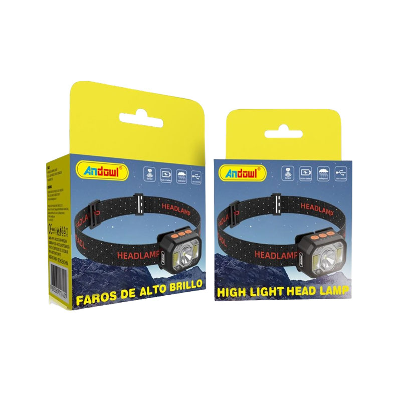 Φακός κεφαλής LED της Andowl για χρήση σε δραστηριότητες που θέλεις να έχεις ελεύθερα τα χέρια σου. Είναι επαναφορτιζόμενος και τροφοδοτείται μέσω της θύρας USB. Έχει ισχυρή ένταση φωτισμού που φτάνει έως 750lm.
