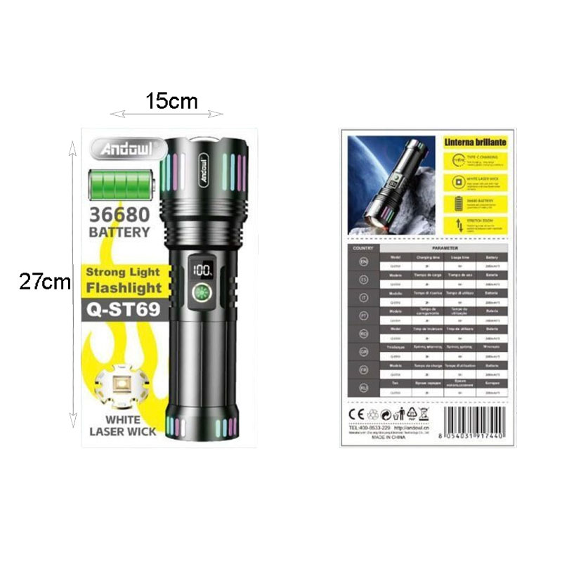 Ισχυρός φακός χειρός επαναφορτιζόμενος Andowl Q-ST69