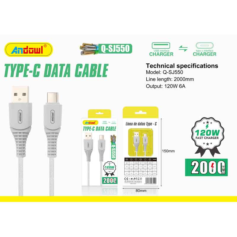Andowl Καλώδιο δεδομένων USB σε Type-c 120W 2M Q-SJ550 – Data Fast Cable