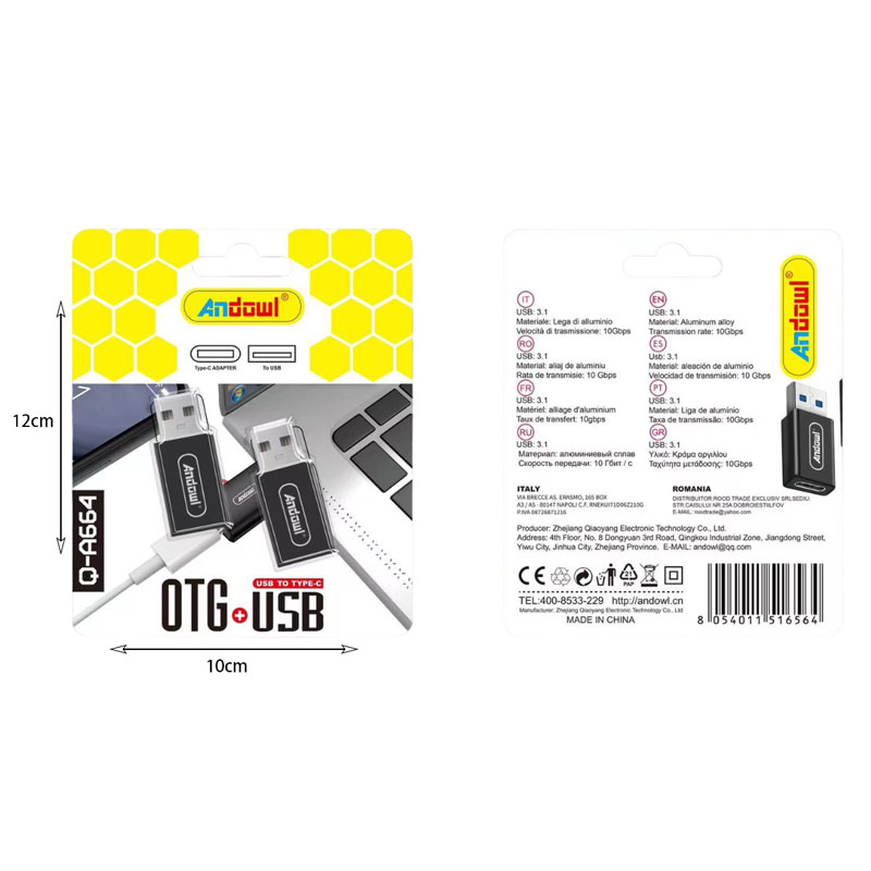 Andowl Μετατροπέας Αντάπτορας Type-C σε USB Q-A664 – OTG+USB Converter