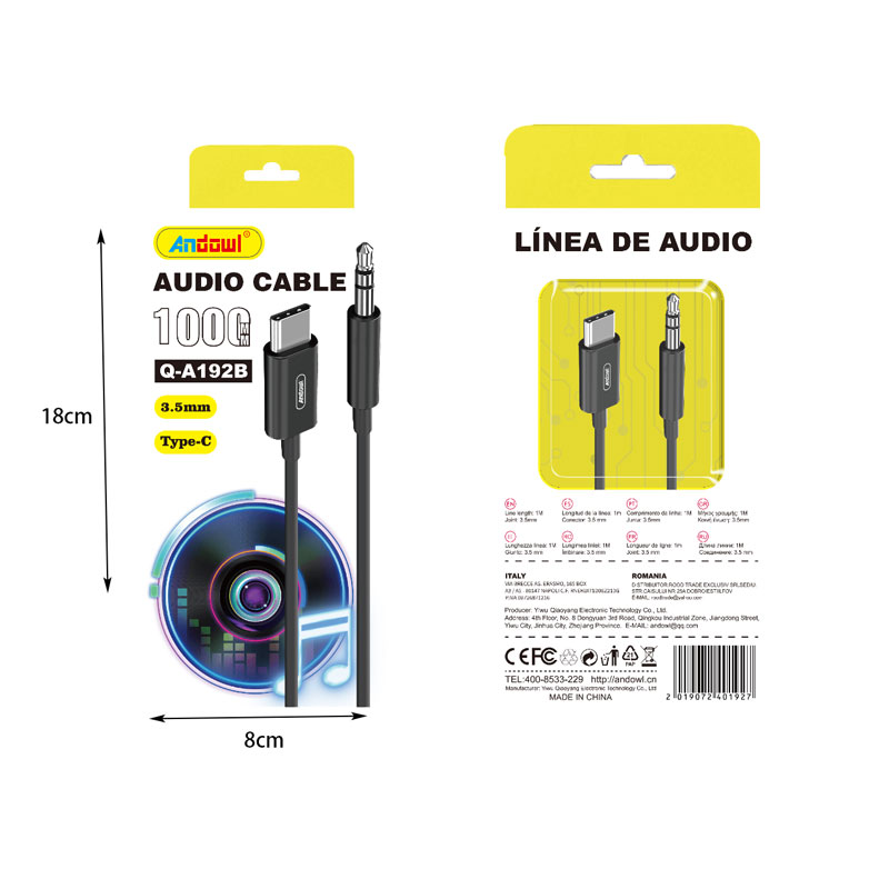 Καλώδιο audio line 3,5mm σε Type-C Andowl Q-A192B