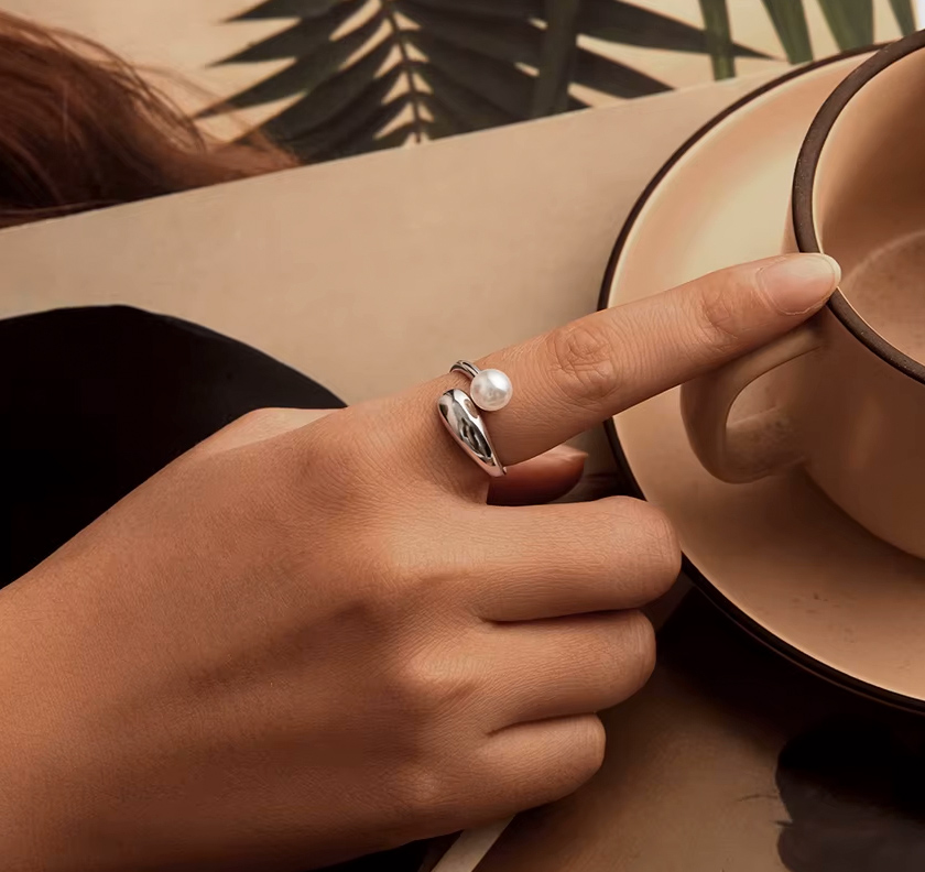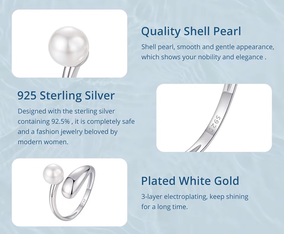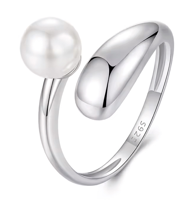 BAMOER δαχτυλίδι BSR662-E με πέρλα, ανοιγόμενο, ασήμι 925, ασημί