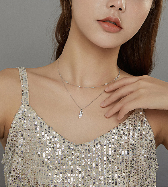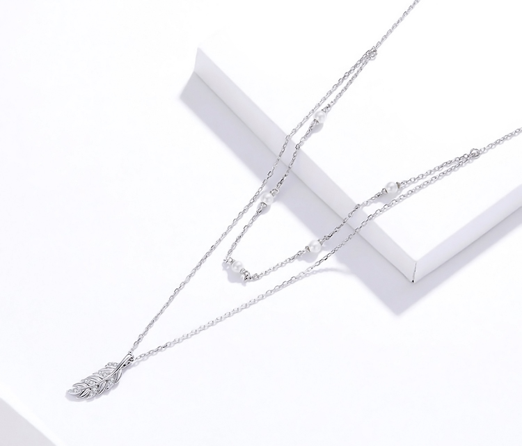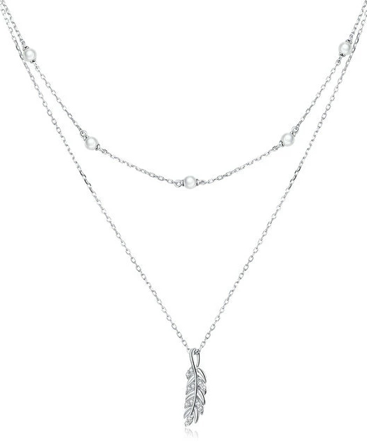 BAMOER κολιέ BSN208 δυο σειρών, με πέρλες, ασήμι 925, ασημί