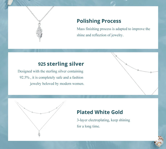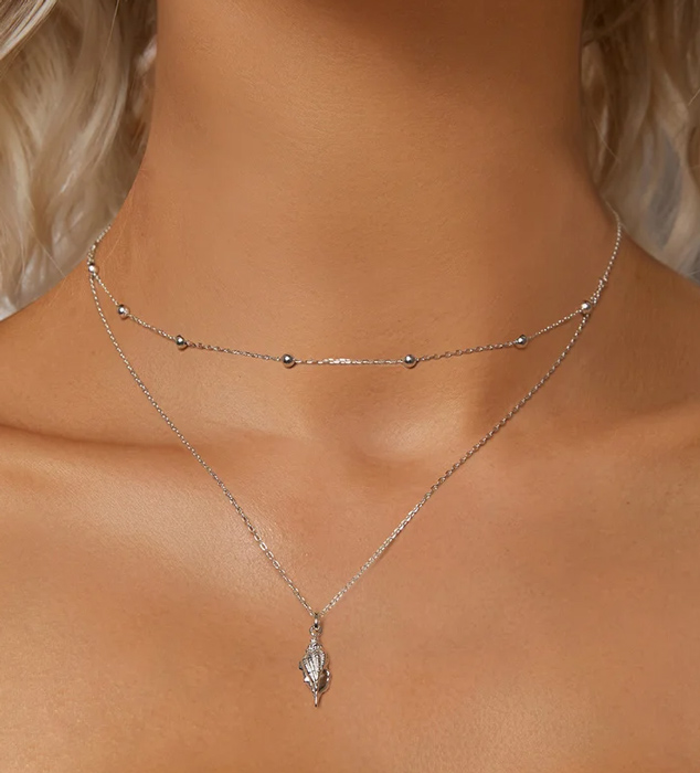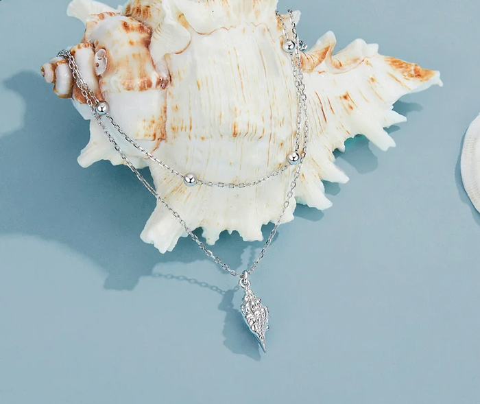 BAMOER κολιέ BSN387, δυο σειρών, σχήμα κοχύλι, ασήμι 925, ασημί