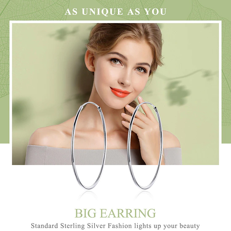 BAMOER σκουλαρίκια κρίκοι SCE710, 30mm, ασήμι 925, ασημί
