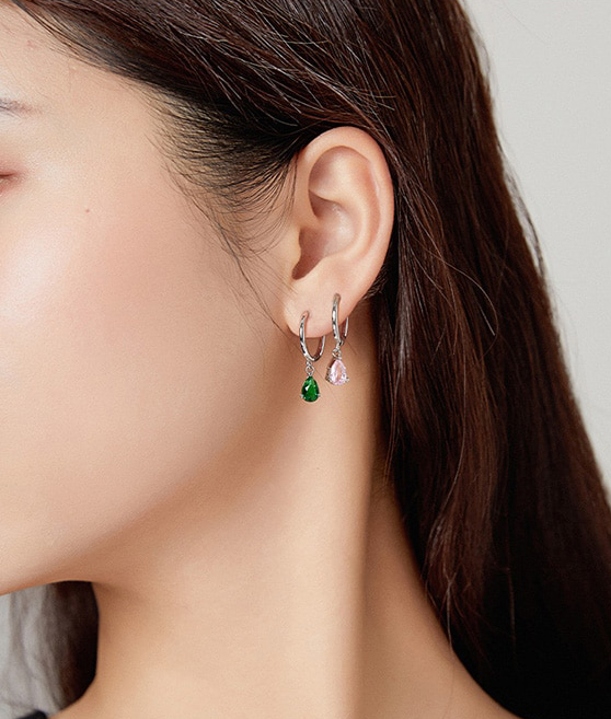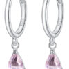 Σκουλαρίκια κρίκος Bamoer κατασκευασμένα από ασήμι 925, επιπλατινωμένα, διακοσμημένα με αστραφτερή κυβική ζιρκόνια σε σχήμα δάκρυ, ημιδιαφανούς ροζ χρώματος η οποία αντανακλά μοναδικά το φως και προσφέρει λάμψη στο κόσμημα.