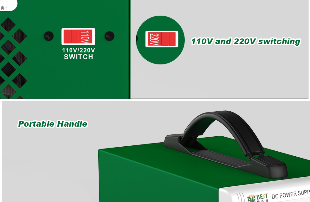 Power supply με απόδοση έως 30V/5A και 8 USB εξόδους. Είναι ιδανικό για χρήση σε εργαστήρια, service centers κινητών τηλεφώνων κλπ. Στο πάνω μέρος διαθέτει λαβή, για εύκολη μεταφορά.