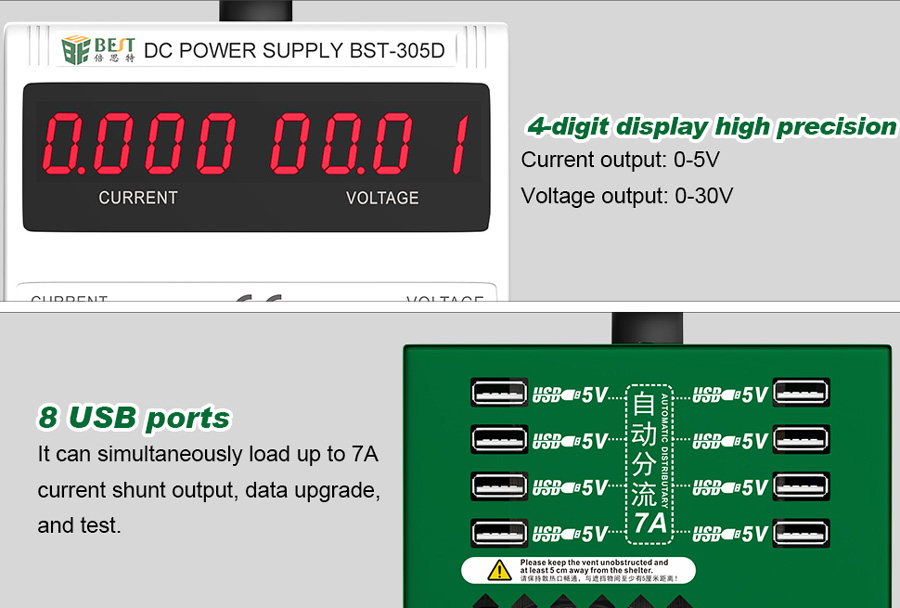 BEST Power supply BST-305D, 30V/5A, AC/DC, 8x USB