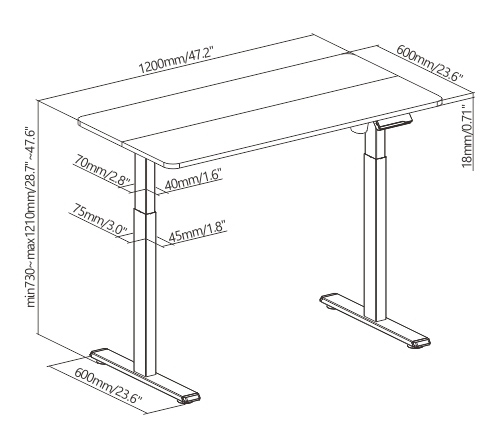 BRATECK ηλεκτρικό γραφείο S08-22D-B, ρυθμιζόμενο ύψος, 120x60cm, λευκό
