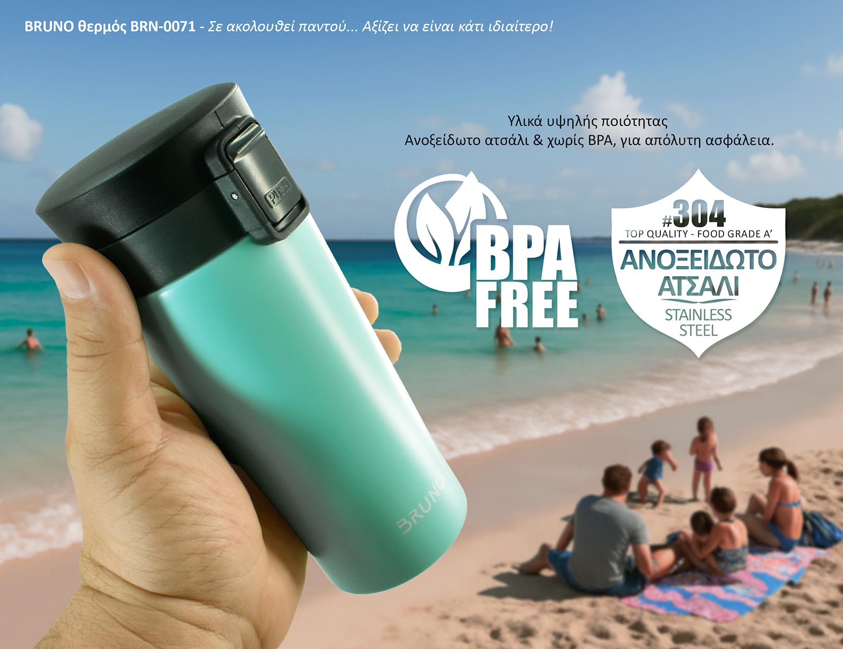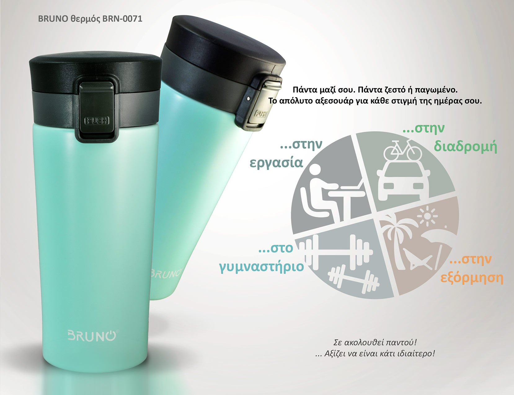 BRUNO θερμός BRN-0071, με κλείδωμα, anti-slip, 400ml,γαλάζιο