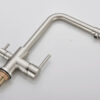 Αυτή η εκπληκτική μπαταρία πάγκου κουζίνας διαθέτει τρίοδο σχεδιασμό για τη σύνδεση με φίλτρο νερού και το δίκτυο παροχής ζεστού και κρύου νερού. Έτσι, μπορείτε να απολαμβάνετε καθαρό, φιλτραρισμένο νερό και να επιλέξετε παράλληλα ανάμεσα σε ζεστό και κρύο νερό με τους διακόπτες.