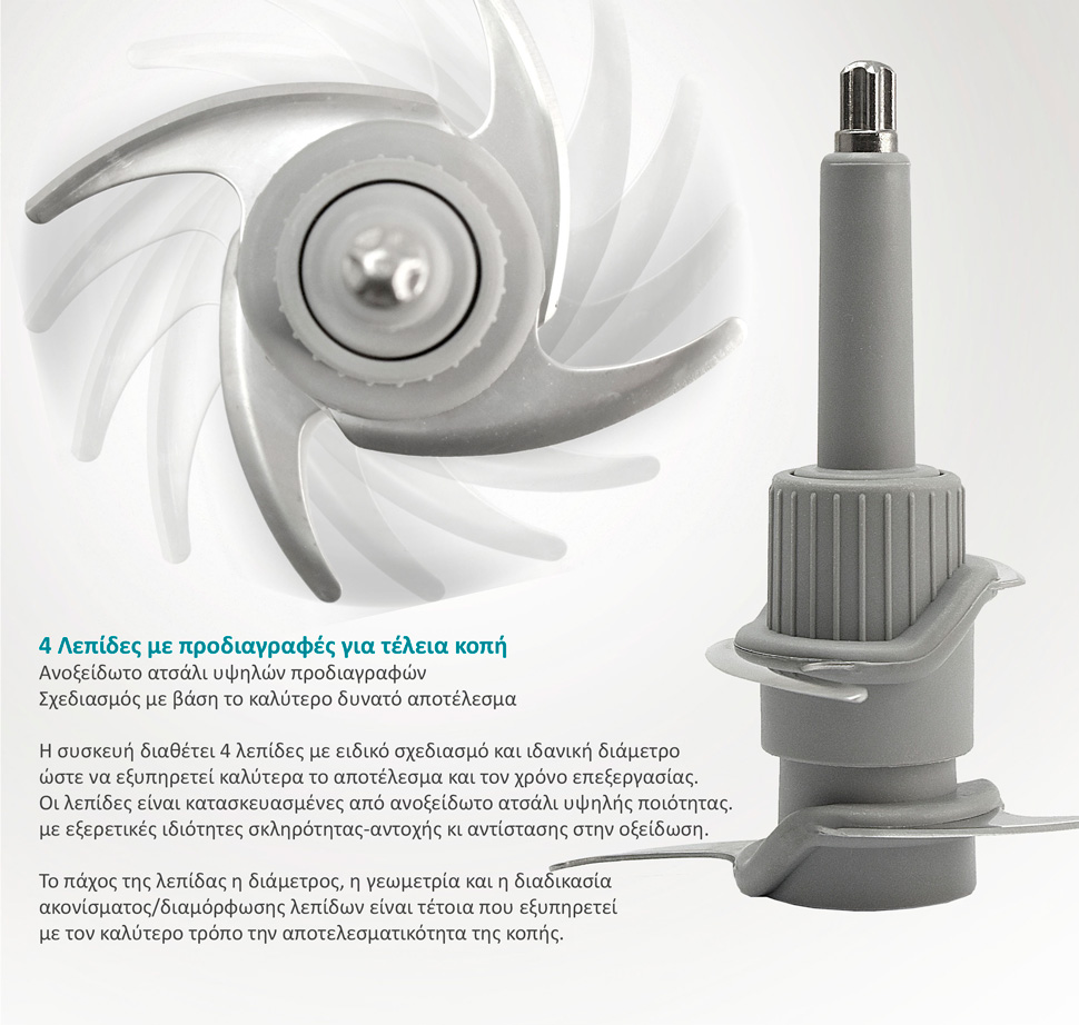 -4 λεπίδες κατασκευασμένες από ανοξείδωτο ατσάλι υψηλής αντοχής