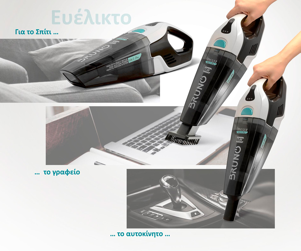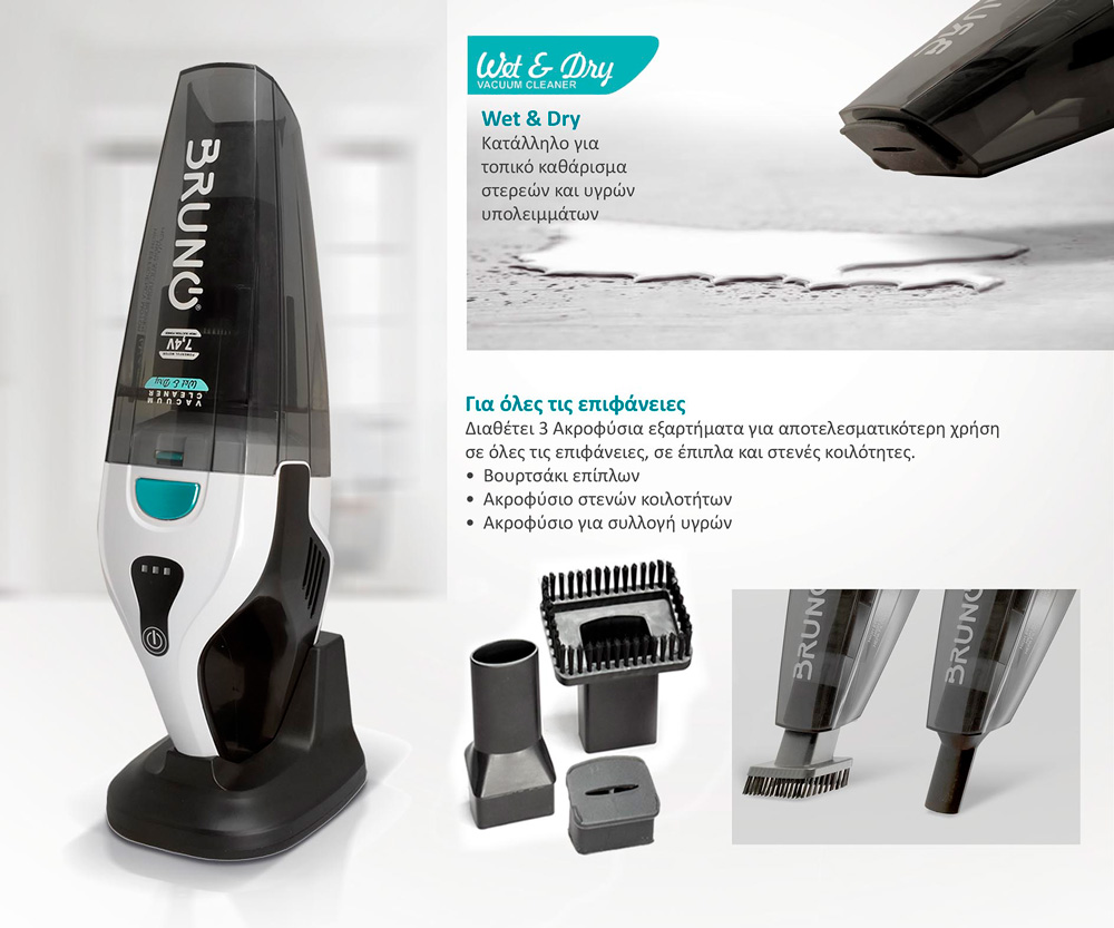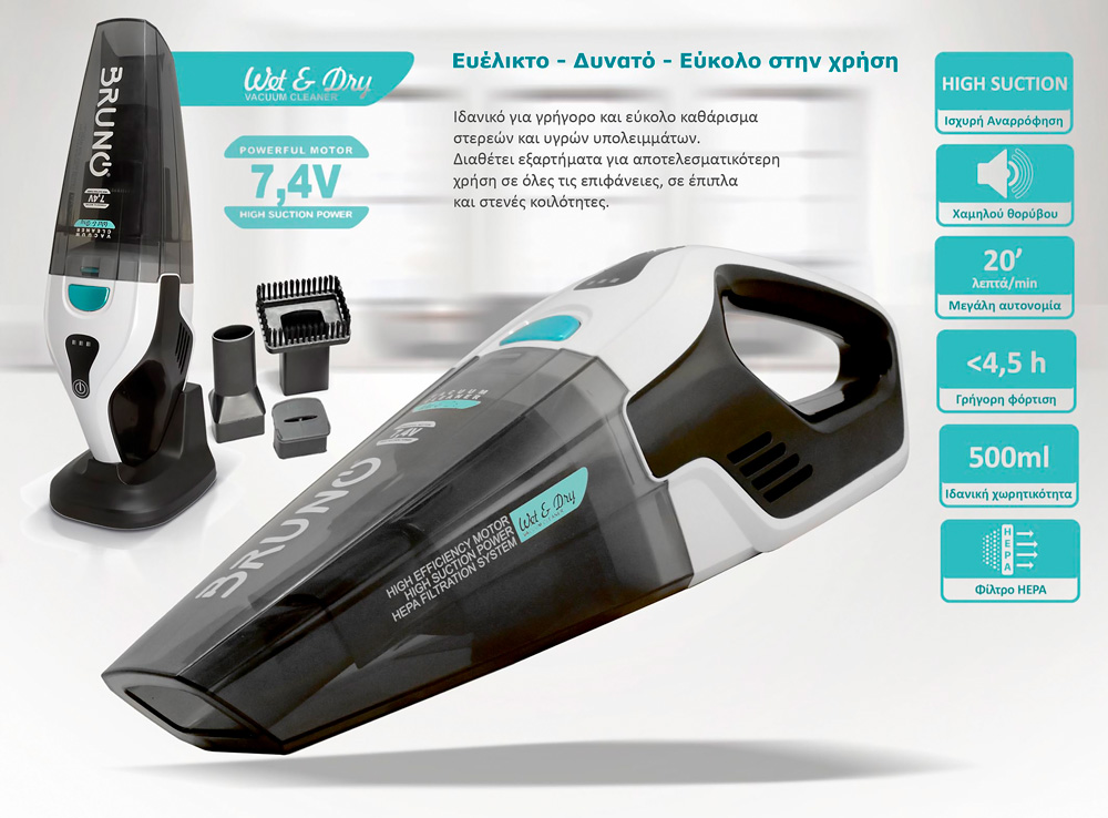 BRUNO σκουπάκι υγρών & στερεών BRN-0131, επαναφορτιζόμενο, φίλτρο HEPA
