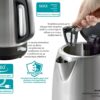 Με ιδανική χωρητικότητα 1,7 λίτρων που καλύπτει κάθε ανάγκη σε ποσότητα νερού και μεγάλη ισχύ 2200W που δίνει την δυνατότητα γρήγορου βρασμού μέσα σε λίγα λεπτά.
