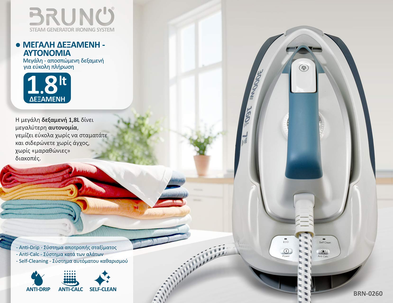 BRUNO BRN-0260 Σύστημα σιδερώματος, πίεσης 7bar με δοχείο 1,8L, 3000W