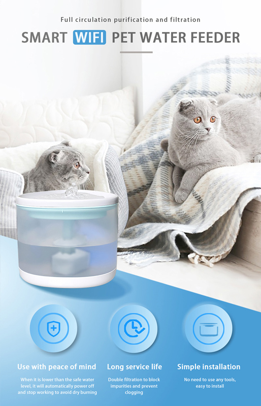 Εξοπλίζεται με κινητήρα που θέτει το νερό σε συνεχή κίνηση φιλτράροντάς το και καθαρίζοντας το από την υπερβολική τρίχα και τη βρωμιά.