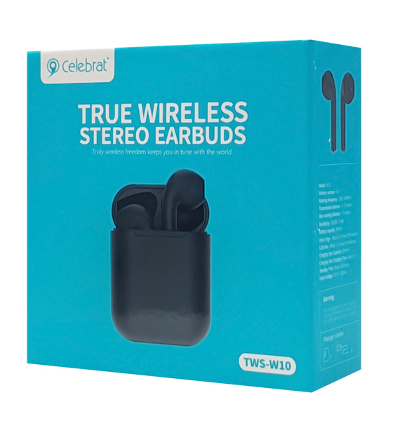 Τα true wireless stereo earphones της Celebrat προσφέρουν κορυφαία ποιότητα ήχου και άριστη εφαρμογή στο αυτί. Είναι συμβατά με tablets, smartphones και κάθε συσκευή που διαθέτει Bluetooth. Διαθέτουν θήκη για την αποθήκευση, προστασία και επαναφόρτιση των ακουστικών. Η θήκη επαναφορτίζεται από καλώδιο φόρτισης USB που παρέχεται στην συσκευασία. Με εργονομικό και λεπτό σχεδιασμό, προσφέρουν άνετη εφαρμογή, ακόμη και μετά από πολλές ώρες χρήσης. Η δυνατότητα smart touch επιτρέπει στην απάντηση κλήσεων, την ενεργοποίηση του voice assistant και την αλλαγή τραγουδιού με ένα άγγιγμα. Έχουν στερεοφωνικό ήχο με πλούσιο μπάσο και καθαρά πρίμα. Τα ακουστικά συνδέονται αυτόματα με την συσκευή μόλις αφαιρεθούν από την θήκη και παρέχουν ένδειξη του επιπέδου της μπαταρίας.