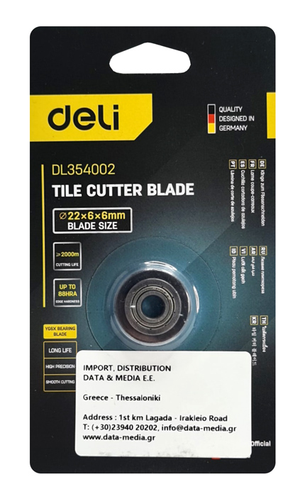 DELI ανταλλακτικό ροδάκι DL354002 για κόφτη πλακιδίων, 22mm, 88HRA