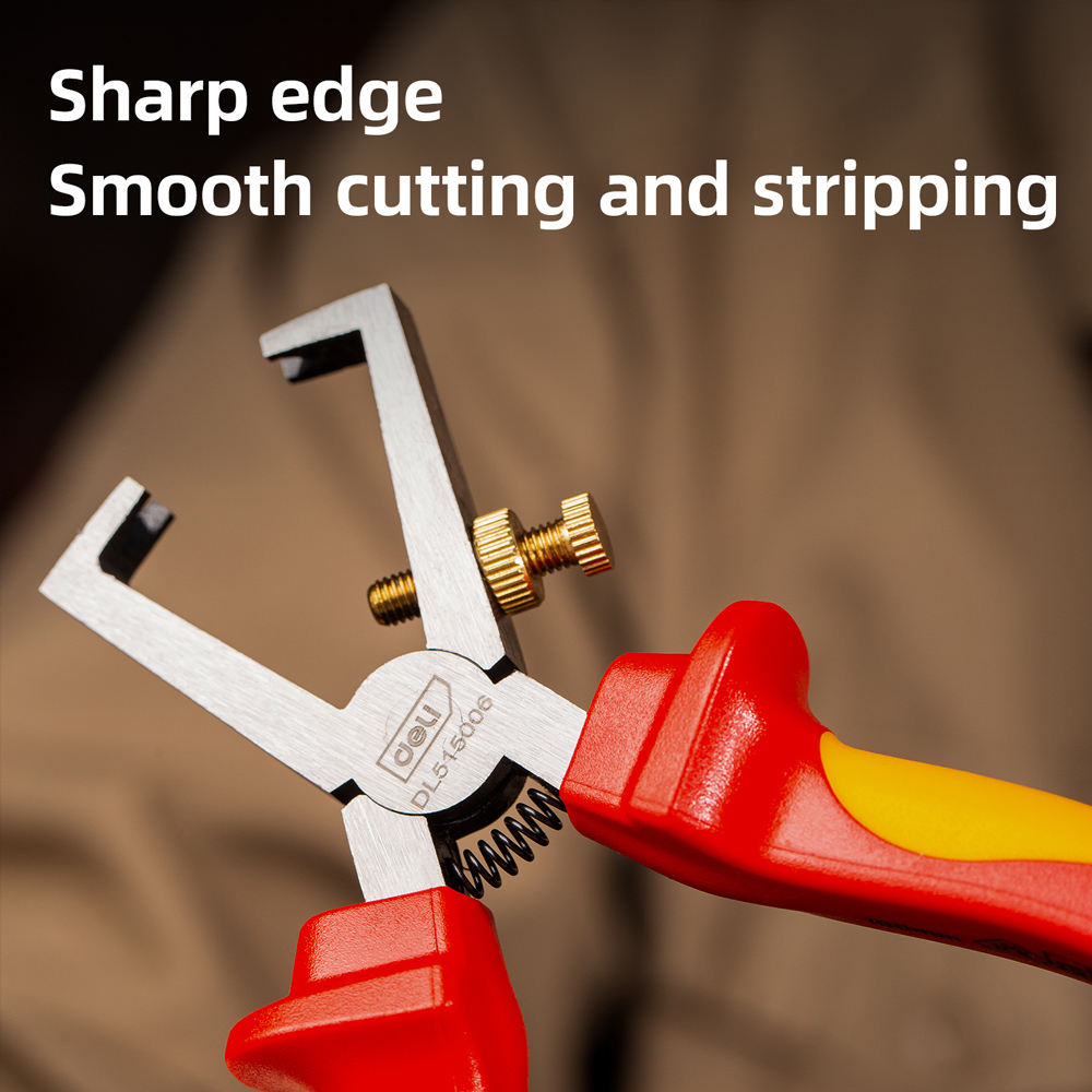 DELI απογυμνωτής καλωδίων ηλεκτρολόγου DL515006, αντιολισθητικές λαβές, ρυθμιζόμενος, VDE 1000V, 160mm