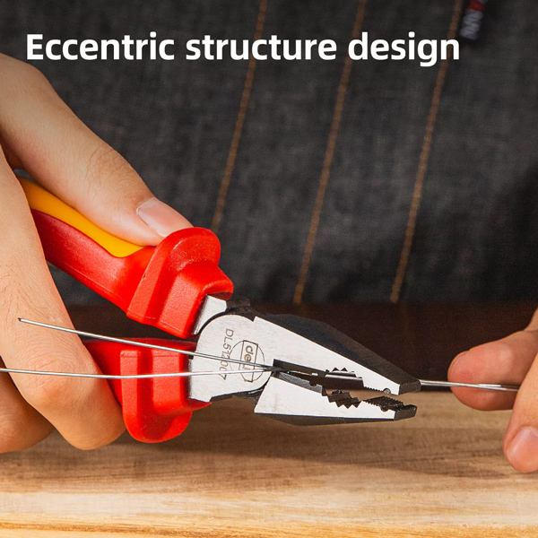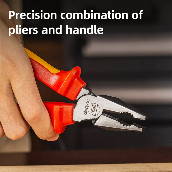 Πένσα ίσια ηλεκτρολόγου από την Deli με πιστοποίηση VDE για αντοχή σε τάση 1000V.