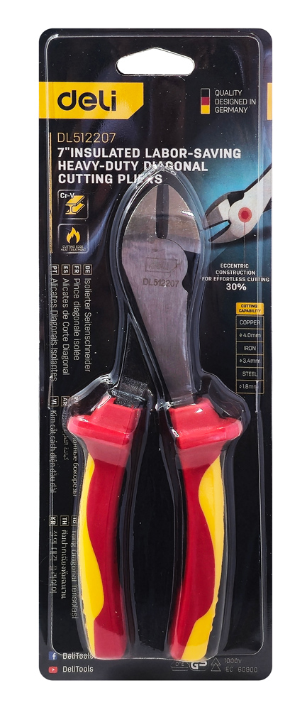 DELI πλαγιοκόφτης ηλεκτρολόγου DL512207 με αντιολισθητικές λαβές, VDE 1000V, heavy duty, 180mm