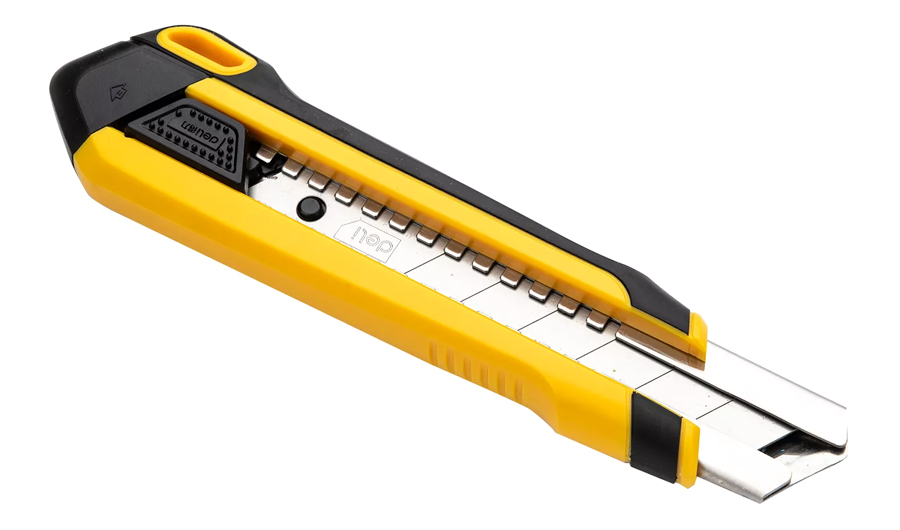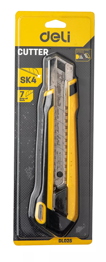 DELI πλαστικό κοπίδι με ασφάλεια DL025, 25mm, κίτρινο