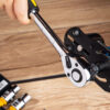 Σετ της Deli που αποτελείται από καστάνια με 45 δόντια και καρέ 1/2", επέκταση, και καρυδάκια. Είναι κατασκευασμένη από χάλυβα ενισχυμένο με χρώμιο-βανάδιο (Cr-V) για μεγαλύτερη αντοχή.
