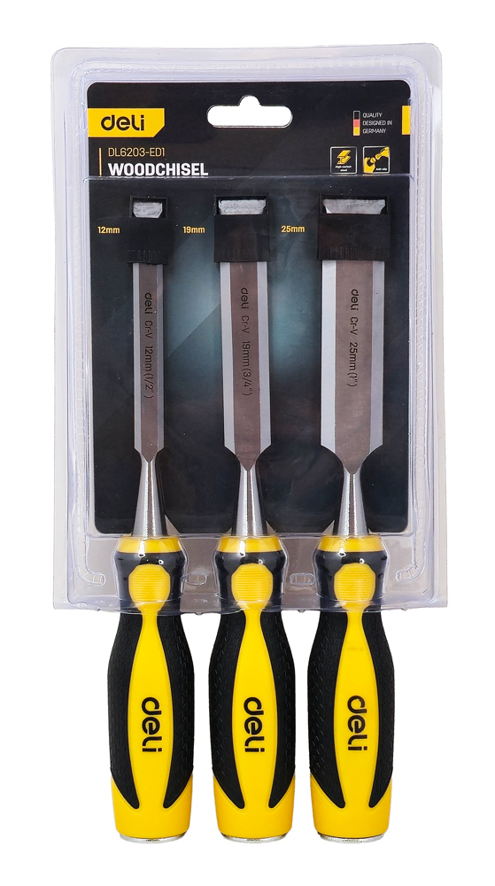 DELI σετ σκαρπέλα ξύλου DL6203-ED1 με αντιολισθητική λαβή, 12/19/25mm, 3τμχ