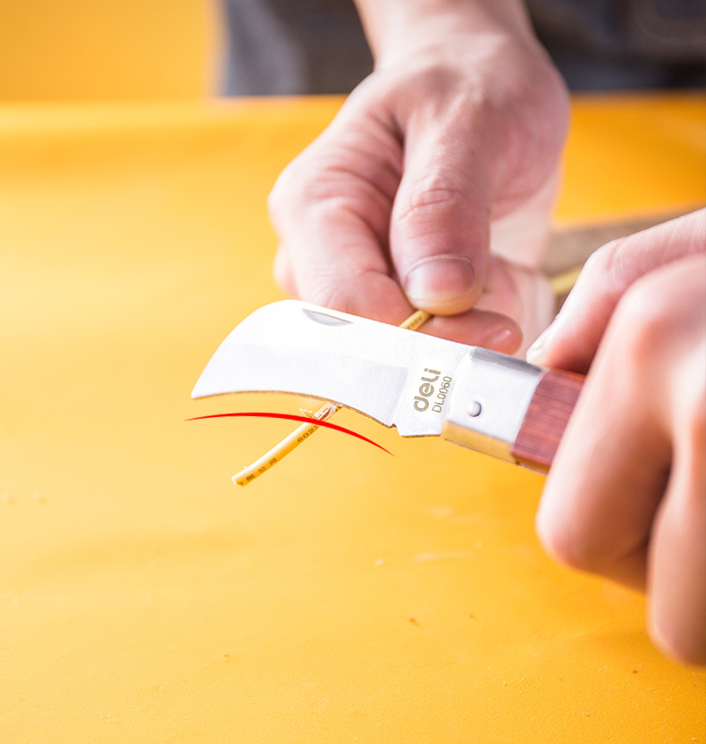 Σουγιάς της Deli με ανθεκτική λεπίδα από ανοξείδωτο ατσάλι και καλαίσθητη ξύλινη λαβή. Είναι ιδανικός για απογύμνωση καλωδίων αλλά και για γενική χρήση.
