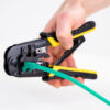 Πολυλειτουργικό εργαλείο της Delock, κατάλληλο για πτύχωση, απογύμνωση και κοπή βυσμάτων 8P (RJ45), 6P (RJ12 / 11) ή 4P. Οι τρεις ενσωματωμένες λεπίδες εξασφαλίζουν την απρόσκοπτη απογύμνωση των καλωδίων και κοπή των strands. Επιπλέον, τα στρογγυλά καλώδια διαμέτρου έως 5,5mm και τα επίπεδα καλώδια πλάτους έως 12,7mm μπορούν να αφαιρεθούν ή να κοπούν πλήρως.