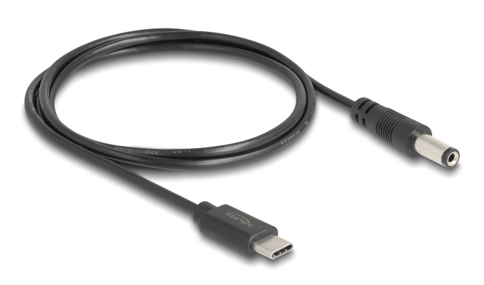 DELOCK καλώδιο USB-C σε DC 5.5 x 2.1mm 85397, 1m, μαύρο